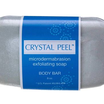 The Crystal Peel Microdermabrasion Exfoliating Soap Bar is a patented exfoliation treatment for the body. Using Crystal Peel's signature ingredients - fine corundum crystals & magnesium oxide crystals from the Dead Sea - this unique body soap polishes away dull, dry layers to reveal toned and glowing skin, while helping to stimulate collagen. The crystals help prevent folliculitis/ ingrown hair.