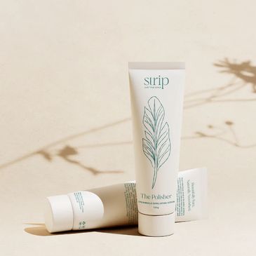 Gentle and powerful, Just The Strip’s Polisher Bikini Body Scrub removes dead skin cells, debris, and build-up to reveal soft, smooth, and glowing skin. This exfoliating scrub combines chemical exfoliants like glycolic and lactic acids with pure salt and a pecan shell powder (which are physical exfoliants) to gently remove impurities and